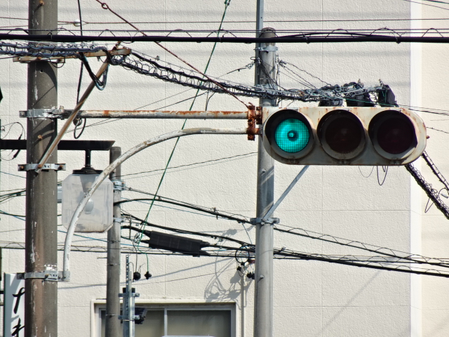 日本の公道では最後の1基となった小糸工業製包丁信号灯器。 静岡県静岡市にて |